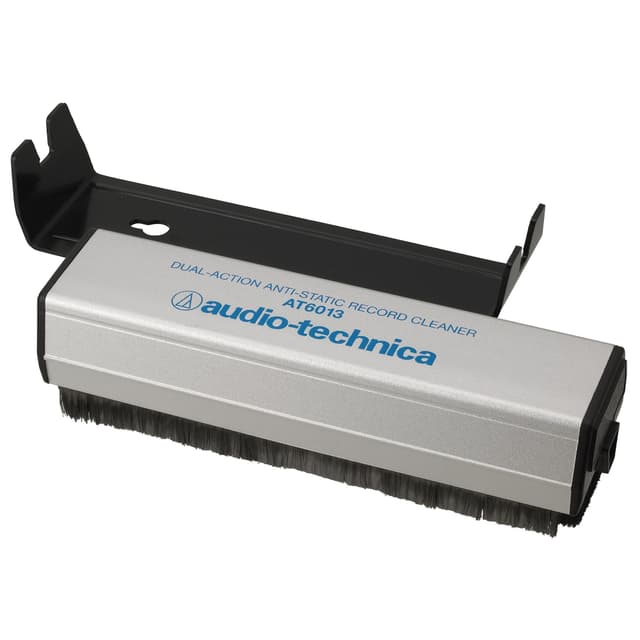 Antistaattisessa Audio Technica -levynpuhdistajassa on kaksi hiilikuituharjaa yhdistettynä samettiseen pehmusteeseen. Puhdistaja pidentää levyn käyttöikää ja parantaa kuuntelukokemusta puhdistamalla pölyn ja epäpuhtaudet yhdellä pyyhkäisyllä.