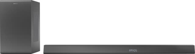 Sounbar tarjoaa Dolby Atmos -tilaäänen, joka tempaa sinut mukaan toiminnan keskelle. Se yhdistää kolme pääkanavaa (keski, vasen ja oikea) bassokaiuttimen sekä kahden ylöspäin suunnatun kanavan kanssa.