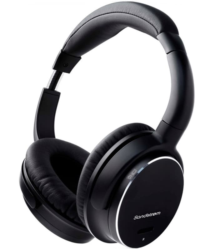 Sulavalinjaiset Sandstrøm kuulokkeet, joissa aktiivinen taustamelun poisto. Mainiot lentomatkoille lentokonesovittimen kanssa.
