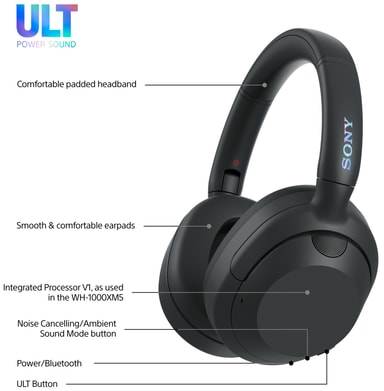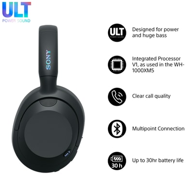 Kuulemasi voimakas ääni on Sonyn suuritehoisen integroidun V1-prosessorin ohjaamaa ja se tuotetaan suurten korkealaatuisten 40 mm:n kuljettajayksikköjen avulla. Vuosikymmenten Sony-ääniasiantuntemuksen ansiosta ULT WEAR -kuulokkeet on suunniteltu bassolinjan ihailijoille.