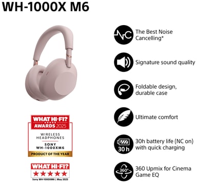 Langattomat Sony WH-1000XM6 Bluetooth -vastamelukuulokkeet - Saatavana sävyissä Musta/Hopea/Midnight Blue/Vaaleanpunainen
