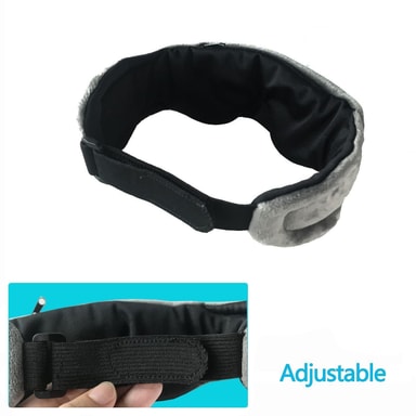 Säädettävä koko: Uninaamio kuulokkeilla on varustettu tarranauhalla, jotta voit säätää uninaamion yksilölliseen kokoon. Kaiuttimien asentoa voidaan myös säätää niin, että ne istuvat mukavasti korville.