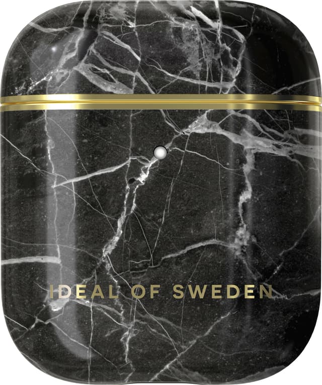 Tyylikäs iDeal AirPods -suojakotelo suojaa AirPods-in-ear-kuulokkeittesi latauskoteloa kolhuilta ja naarmuilla, samalla ladaten niitä. Kestävästä muovista valmistetussa kotelossa on marmoria muistuttava ulkopinta yksityiskohtaisen kultaisella koristelulla.
