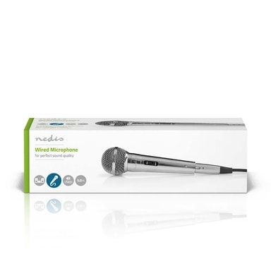 Nedis Mikrofoni | Kardioidi | Irroitettava kaapeli | 5.00 m | 80 Hz - 13 kHz | 600 Ohm | -72 dB | On/off-kytkin | Metalli | Hopea