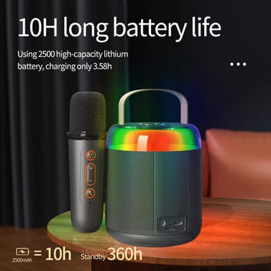 Pitkäkestoinen akku: Nauti keskeytyksettömistä karaoke-sessioista suuren kapasiteetin akun ansiosta. Mikrofoni tarjoaa 3-4 tuntia käyttöaikaa yhdellä latauksella, kun taas kaiuttimessa on vaikuttava akun kesto, jonka avulla voit laulaa ja juhlia koko yön.