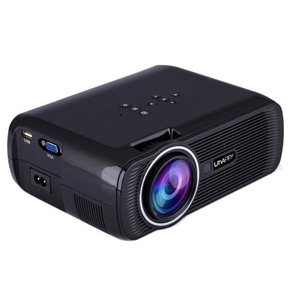 Musta LED-projektori HD 1080P:lla ja kaukosäätimellä