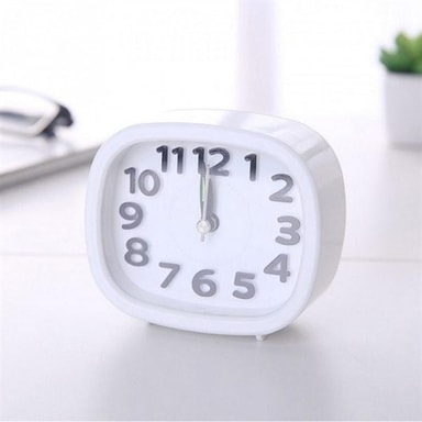 Paristokäyttöinen analoginen herätyskello. Kellokoneisto: Kvartsi Mitat: 95x85m Materiaali: Muovi Väri: Valkoinen.