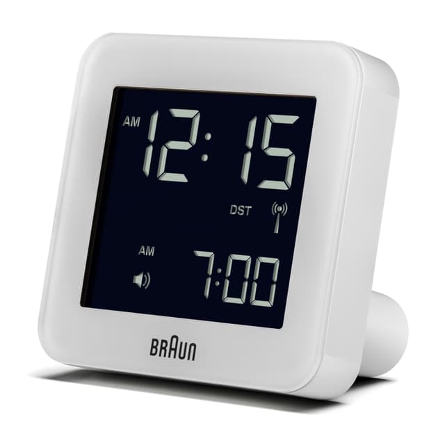 Kahden kultaisen if-palkinnon voittaja ja red dot -palkinto tämä braunin maailmanlaajuinen radio-ohjattu herätyskello on suunniteltu vastaamaan braunin ydinfilosofiaa, jossa suunnitellaan peilien toiminnallisuutta ilmaistuna patentoidulla korkealla näkyvyyden taustavalolla, joka on tehnyt tämän kelloisen standout-tuotteen.