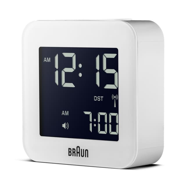 Innovatiivisten ja huippuluokan kellojen valikoima on suunniteltu 2000-luvulle, mikä heijastaa braunin ydinfilosofiaa, joka suunnittelee peilien toimivuutta. Tässä tekninen huippuosaaminen ja laatu yhdistyvät tämän uuden esteettisen muodon muodostamiseksi. Kellolla on maailmanlaajuinen radio-ohjattava liike, torkkutoiminto, taustavalo, 12/24 tunnin näyttö, helppolukuinen näyttö, nopea asetustoiminto, mattakotelo, mukana toimitettu akku ja 2 vuoden takuu.