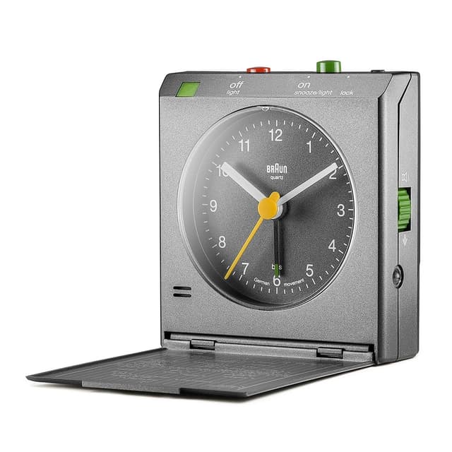 Tämä reflex control travel -hälytyskellolla on liike (aalto) aktivoitu torkkufunktio, joka heijastaa braunin ydinfilosofiaa suunnittelun peilien toiminnallisuudelle. Jokaisella tämän kellon näkökulmalla on tarkoitus kääntää kannesta, joka sisältää maailman aikavyöhykkeen kartan taskulampulle.