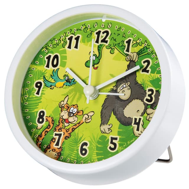 Hama herätyskello lapsille, viidakko. Ajan ja hälytysajan analoginen näyttö. Tunti, minuutti ja sekunti viisari. Yksi hälytysaika voidaan asettaa. Hiljainenihanteellinenherätyskello lasten makuuhuoneisiin.