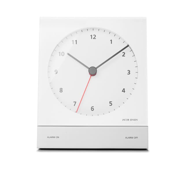 Jacob jensen herätyskellot ovat kevyitä ja tyylikkäitä ja niissä on hyvä koko yöpöydälle. Lisäksi ne ovat helppokäyttöisiä ja niissä on hiljainen kellokoneisto ja kaunis valaistu näyttö, joka on helppo lukea jopa pimeässä. Hälytys kasvaa voimakkaasti ja sillä on rajoittamaton torkku -toiminto: joka kerta kun painat painiketta, hälytys siirretään kahdeksan minuutin ajaksi.