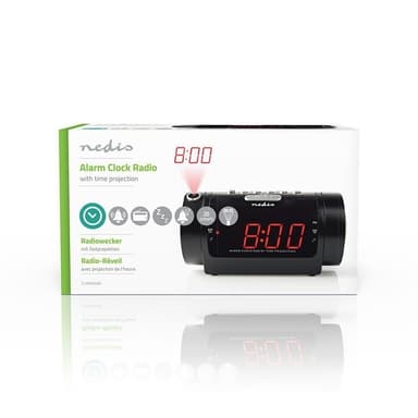 Nedis Digitaalinen Kelloradio | LED | Ajan heijastus | AM / FM | Torkkutoiminto | Uniajastus | Hälytysten lukumäärä: 2 | Musta