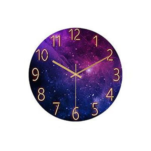 Seinäkello kauniilla kellotaululla - Liila tähtitaivasTutustu ominaisuuksiin