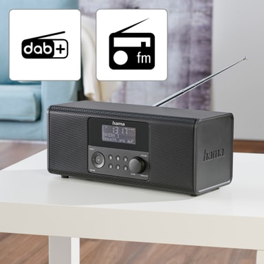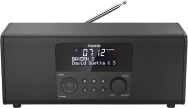 Kuuntele suosikkiradioasemiasi, nauti keskusteluohjelmista ja pysy ajan tasalla viimeisimmistä uutisista Hama DR1400 Radion avulla. Radio tarjoaa sekä digitaalisen että analogisen vastaanoton DAB+/DAB- ja FM-tukien kautta. Tallenna suosikkiasemasi ja käytä radiota helposti valitsimen ja etupaneelin painikkeiden avulla tai kuuntele musiikkia yksityisesti 3,5 mm kuulokeliitännän avulla. Lisäksi kiinteä teleskooppiantenni mahdollistaa helpon signaalin poiminnan.