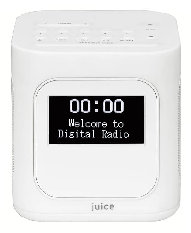 JUICE kannettavassa radiossa on stereoääni, OLED-näyttö ja liitäntä ulkoisille musiikkilaitteille.
