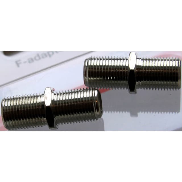 Triax F-adapteri, jossa naaras-naaras -liittimet. Antenneille, satelliittilautasille, digibokseille, vahvistimille ja muuhun liitäntään. Kahden kappaleen pakkaus.