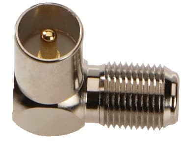 Triax kulmaliitin F-naarasliittimen yhdistämiseen IEC-urosliittimen kanssa. Antenneille, satellittilautasille, digibokseihin, vahvistimiin ja muihin liitäntöihin.