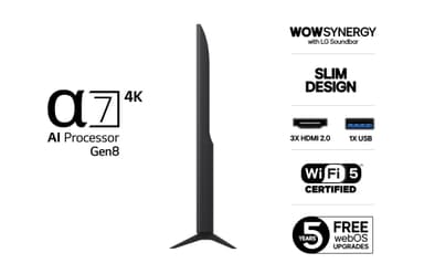 Astu sisään 4K-maailmaan. LG UHD -televisio tarjoaa upean kuvanlaadun, älykkäitä ominaisuuksia ja tyylikkään muotoilun edulliseen hintaan. Voit nauttia terävästä kuvanlaadusta ja värikylläisyydestä, joka herättää sisällöt eloon niin elokuvia, sarjoja kuin suoria TV-lähetyksiäkin katsoessa. Se on täydellinen valinta päivittäisten viihde-elämysten parantamiseen.
