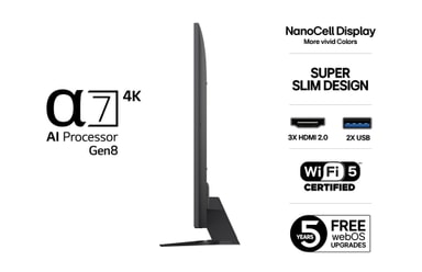 Herätä viihde eloon LG NanoCell -televisiolla, joka yhdistää puhtaat värit 4K‑terävyyteen saaden aikaan elävän ja luonnollisen kuvan. Tyylikäs design, älykkäät ominaisuudet ja tasainen suorituskyky tekevät NanoCellista ihanteellisen valinnan päivittäiseen katseluun. Voit luottaa sen laatuun ja LG:n innovaatioiden voimaan.