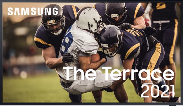 QLED-tekniikkaa hyödyntävä ulkokäyttöön tarkoitettu televisio. Kun haluat nauttia TV-viihteestä ulkona.