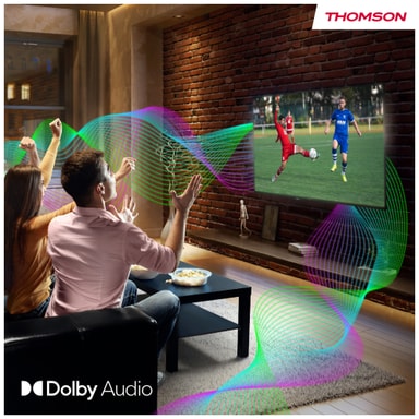 Dolby Audio -teknologian ansiosta televisio tarjoaa dynaamisen äänikokemuksen, parantaen elokuvien, musiikin ja ohjelmien nautintoa selkeällä ja eloisalla äänenlaadulla.