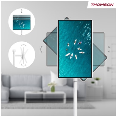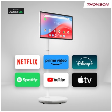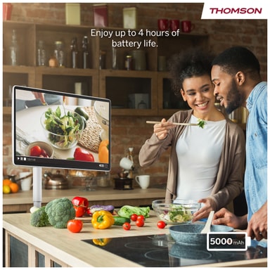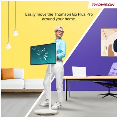 Nauti täysin uudesta tavasta katsoa, työskennellä ja pelata Thomson Go Plus Pro 27" FHD -älynäytön avulla. Androidin voimin toimiva ja liikkuvuuteen suunniteltu kosketusnäyttölaite siirtyy vaivattomasti huoneesta toiseen tarjoten Full HD -näytön kirkkauden ja sisäänrakennetun akun mukavuuden.