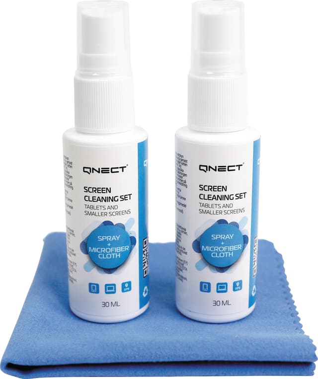 • Qnect Cleaning puhdistussuihke ja puhdistusliina näytölle (2 x 30 ml)