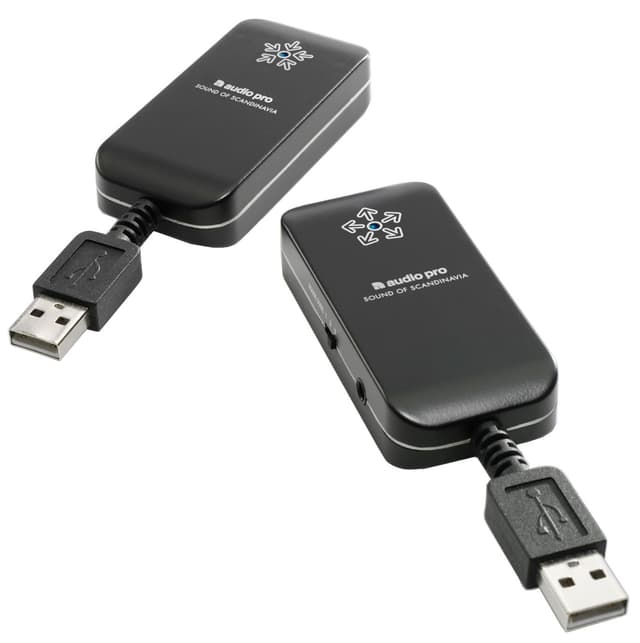 Audio Pro WF-100 sovitinpakkaus koostuu RX-100-vastaanottimesta ja TX-100-lähettimestä. Kytke lähetin tietokoneeseen, vastaanotin kaiuttimeen ja nauti CD-tasoisesta äänentoistosta langattomasti.