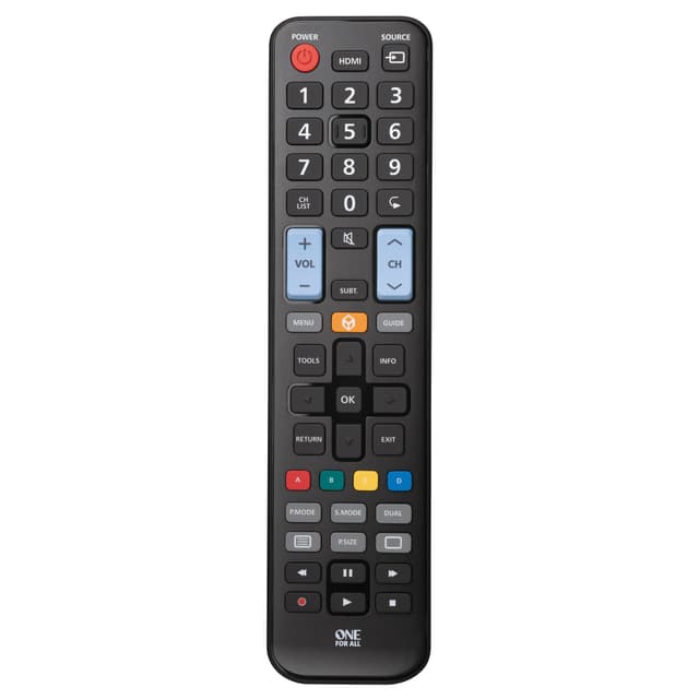 One For All URC 1910 kaukosäädin Samsung-televisioille. Tukee useimpia Samsung-toimintoja.Tutustu ominaisuuksiin