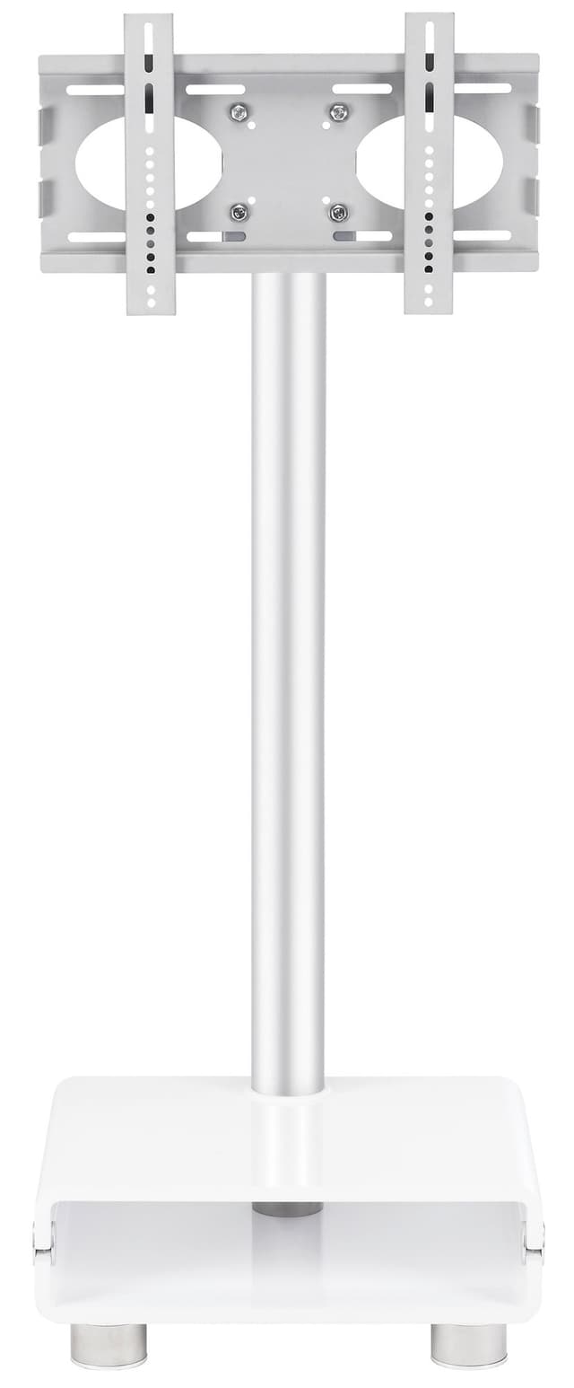Valkoinen, kiiltäväpintainen TV-taso, jonka neljän maalikerroksen viimeistely takaa tyylikkään lopputuloksen. Tanko ja jalat ruostumattomasta teräksestä.