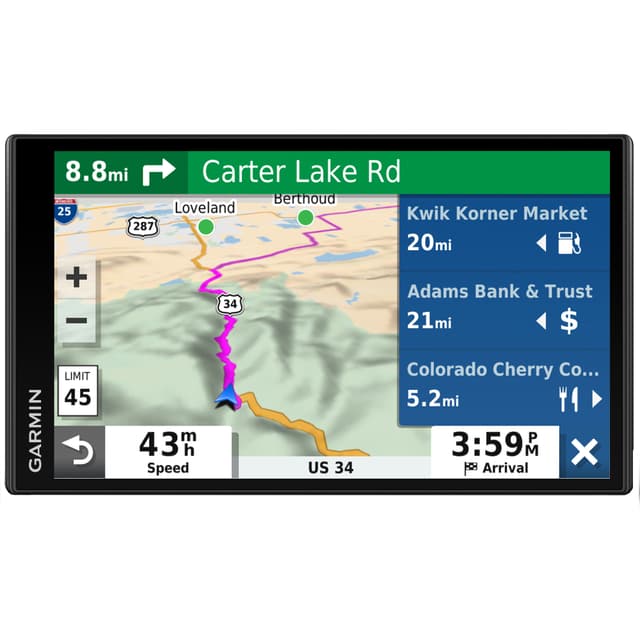 Yhdistä navigaattori älypuhelimeenGarmin Drive -sovelluksen avulla. Saat reaaliaikaista tietoa liikenteestä, päivityksiä säästä sekä tekstiviestejä ja ilmoituksia puhelimestasi suoraan navigaattorin näytölle.