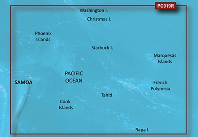 Ennennäkemätön rannikkokartan kattavuus Tarjoaa poikkeuksellisen kattavuuden, selkeyden ja yksityiskohdat rannikkokartoilla, joissa on integroidut Garmin- ja Navionics®-tiedot Auto Guidance¹ -tekniikka laskee reitin käyttämällä haluamaasi syvyyttä ja ylävaraa ja tarjoaa ehdotetun polun, jota seurata Sisältää syvyysalueen varjostuksen jopa 10 syvyysalueelle, joten voit tarkastella tavoitesyvyyttä yhdellä silmäyksellä Jopa 1':n ääriviivat antavat tarkemman kuvauksen pohjarakenteesta, mikä parantaa kalastuskarttoja ja navigointia suolla, kanavissa ja venesatamissa Koe vertaansa vailla oleva kattavuus ja loistavat yksityiskohdat ollessasi vedessä karttojen avulla, joissa on integroitu Navionics®-tiedot, Auto Guidance -tekniikka 1 ja paljon muuta. Automaattinen opastustekniikka Olitpa kalastamassa tai risteilyllä, valitse paikka ja saat reitin, joka näyttää yleisen polun ja lähellä olevat esteet turvallisessa syvyydessä 1 . Syvyysalueen varjostus Tämä ominaisuus näyttää korkean resoluution syvyysalueen varjostuksen jopa 10 syvyysalueelle, jotta voit tarkastella määrittämääsi tavoitesyvyyttä. Yksityiskohtaiset ääriviivat BlueChart g3 -kartoissa on 1 tuuman ääriviivat, jotka antavat tarkemman kuvauksen pohjarakenteesta, mikä parantaa kalastuskarttoja ja parantaa soiden, kanavien ja satamasuunnitelmien yksityiskohtia. Matala veden varjostus Navigoinnin helpottamiseksi Shallow Water Shading mahdollistaa karttavarjostuksen käyttäjän määrittämässä syvyydessä, jotta matalista vesistä saadaan selkeä kuva. KATTAVUUS Yleinen kattavuus Tongan, Samoan, Amerikan Samoan, Ranskan Polynesian, Kiribatin ja Cookinsaarten rannikoista. Tähän yleiskattaukseen sisältyy lukuisia yksityiskohtaisia kaavioita, jotka kattavat esimerkiksi Nuku'alofa, Ton., Apia, Sam., Pago Pago, Am. Sam., Tahiti ja Bora Bora. 1 Automaattinen opastus on tarkoitettu vain suunnittelutarkoituksiin, eikä se korvaa turvallisia navigointikäytäntöjä. Automaattinen opastus ei sisälly esiladattuun BlueChart g3:een ECHOMAP™ Plus -sarjan karttaplottereille