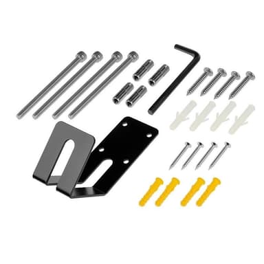 Laturin mukana tulevassa sarjassa saat kaiken tarvittavan laturin nopeaan ja täydelliseen kiinnittämiseen seinälle: porausmallin, joukon ruuveja ja tappeja sekä pidikkeen kaapelin kätevään säilytykseen seinällä.