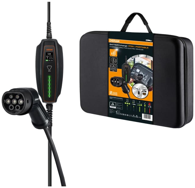 Sähköautoille suunniteltu Osram-latauskaapeli on luotettava lisävaruste, joka sopii täysin sähköisille ja hybridiautoille. Se tukee korkeintaan 3,6 kW/16 A lataustehoa. Kaapeli tarjoaa IP65- ja IK10-kestävyysluokitukset, toimitetaan kätevässä säilytyskotelossa ja kestää jopa 20000 tuntia latausaikaa.