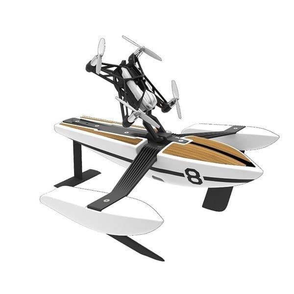Parrot Hydrofoil Newz on hybridi drone. Lisää kaksi kelluketta runkoon ja siitä tulee erittäin suorituskykyinen vene! Järvissä tai uima-altaissa se voi saavuttaa 10 km / h nopeuden. Huippunopeudella se voi nostaa itsensä muutaman cm vedestä.