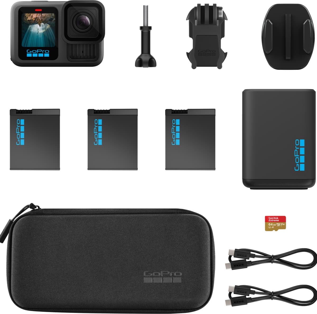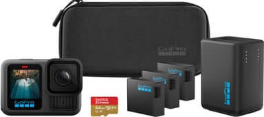GoPro HERO13 Black -actionkamera (Power Bundle) sisältää 5,3K-videon ja HB-sarjan objektiivit. Siinä on HyperSmooth 6.0 -vakautus, sisäänrakennettu 360° horisonttilukitus ja joustava kiinnitys, ja mukana toimitetaan 3 Enduro-akkua.Tutustu ominaisuuksiin