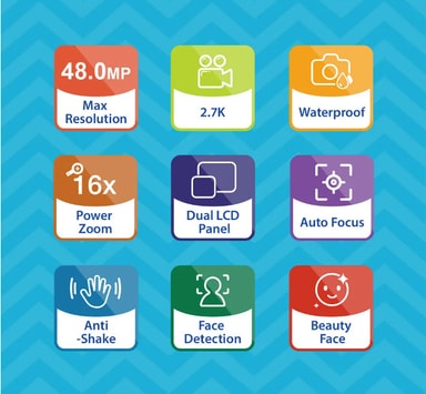 48MP- ja 4K-digitaalikamera: K- kamerassa on tehokas 48MP-kuvatarkkuus ja 4K-videotallennusominaisuus, ja se on varustettu 2,8 tuuman näytöllä katselun helpottamiseksi. Tämä varmistaa, että jokainen ottamasi kuva ja video on yksityiskohtainen ja todenmukainen, jotta arvokkaat muistosi säilyvät parhaalla mahdollisella tavalla.
