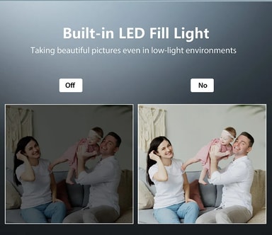 Sisäänrakennettu täyttövalo: Täyttövalo tarjoaa tasaisemman valon heikossa valaistuksessa.