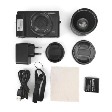 24 megapikselin digitaalikamera: Tällä kameralla on erittäin vaikuttava 24 megapikselin kuvaresoluutio ja 1080P-videotallennusominaisuus. Se tuottaa teräviä ja eloisia kuvia ja uskomattoman yksityiskohtaisia ja todenmukaisia videoita, joten voit säilyttää muistosi yhtä selkeästi kuin silloin, kun koit ne ensimmäisen kerran.