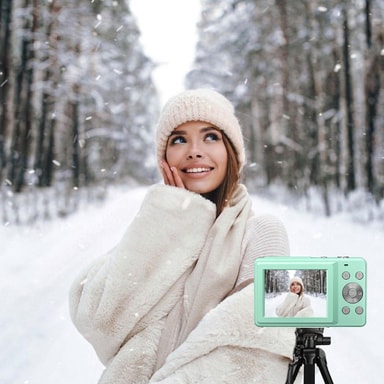 Kompakti ja kannettava muotoilu: Tyylikäs ja kompakti kokonsa ansiosta tämä kamera mahtuu helposti taskuun tai laukkuun, joten se on kätevä kuljettaa mukana ja tallentaa erityisiä hetkiä missä ikinä menetkin.