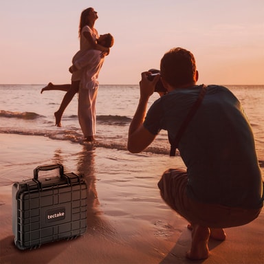 Pölytiivis, sirpaleenkestävä, lämpötilan kestävä: tämä kevyt kompakti kamerakotelo Tectakelta on suunniteltu äärimmäiseen suojaukseen. Sen vankka ulkokuori tekee tästä yleiskotelosta vastustuskykyisen iskuja ja äärimmäisiä sääolosuhteita vastaan. Napsautussulkimet ja rengastiiviste suojaavat lialta, kosteudelta, sateelta ja vedeltä. Kuljetuskotelon paineventtiili varmistaa, että sisäinen ja ulkoinen paine ovat tasapainossa. Myös kameralle ja valokuvaustarvikkeille on tilaa. Sisällä oleva vapaasti erotettava kuutiovaahto pitää arvoesineet luotettavasti turvassa. Kuljeta herkkiä laitteita turvallisesti tässä kestävässä kameralaukussa tectakelta.