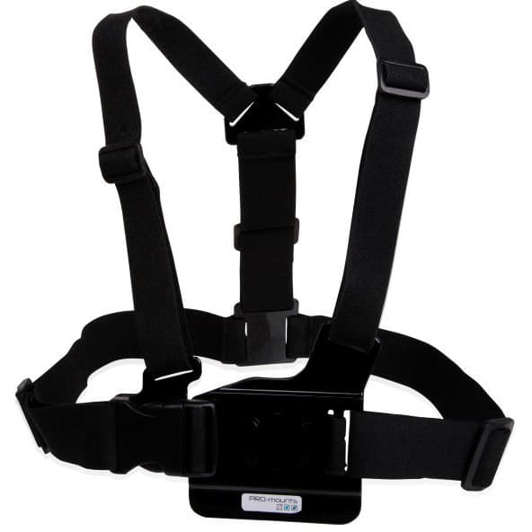 Pro-Mounts -kiinnitysvaljaat GoPro -action-kameroille. Valjaat mahdollistavat kuvaamisen lasketellessa, pyöräillessä ja muissa tilanteissa, jolloin et voi itse pidellä kameraasi. Valjaissa on säädettävät hihnat.