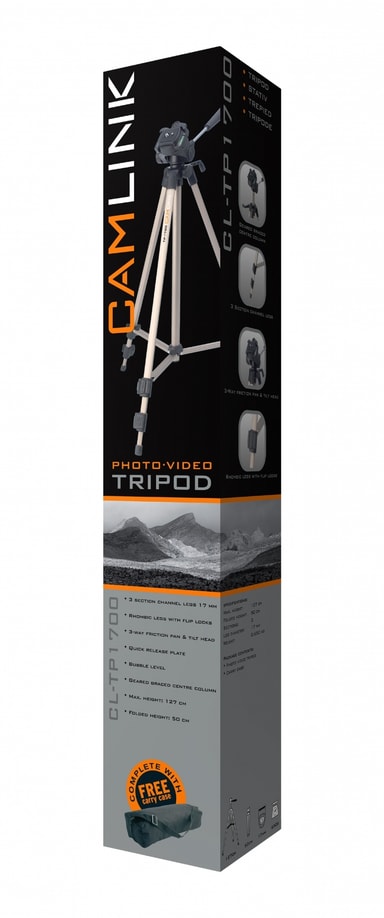 Product description: 3 section channel legs 17 mm. rhombic legs with flip locks. 3-way friction pan & tilt head. quick release plate (cl-qr17). bubble level. geared braced centre column. general information: max. Height: 127 cm. folded height: 50 cm. sections: 3. leg diameter: 17 mm . weight: 0,738 kg. maximum load: 2 kg.