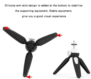 Liukastumisen estävät jalat: Telineen jalkojen alapuolella on silikoni, jotta jalustan tulisi seisoa tukevasti liukumatta pöydällä.