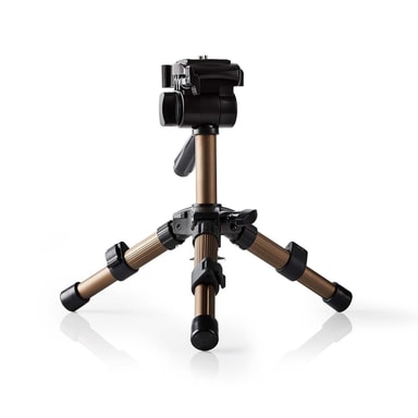 Mini kolmijalka valokuva- ja videokameroille terävien ja vakaiden kuvien ottamiseen NEDIS Valokuva- ja videostatiivi , jossa on 2-suuntainen jatkojalka ja 3-suuntainen panorointipää, jossa on napsulukitus ja vesivaaka.