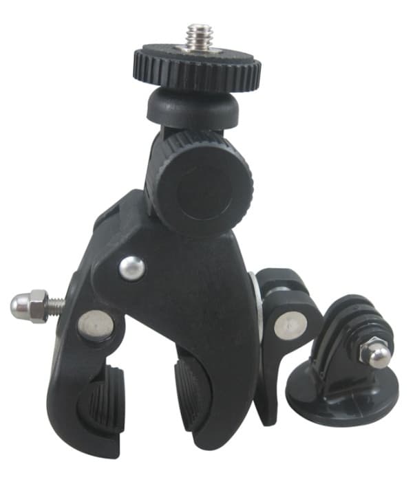 Kiinnike, joka mahdollistaa kompaktikameran tai GoPron (mukana tulevan sovittimen kanssa) kiinnittämisen esimerkiksi polkupyörän ohjaustankoon.