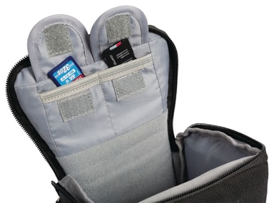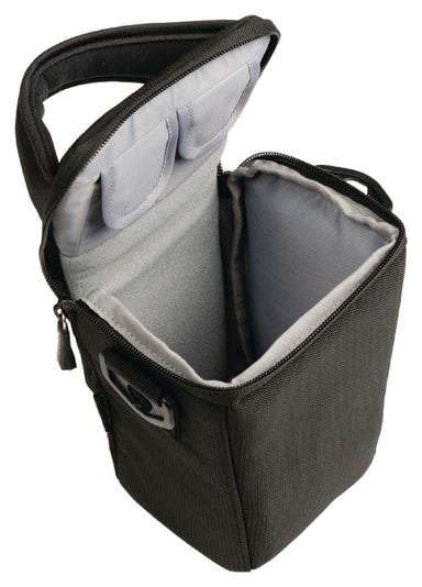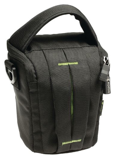 Product description: water resistant holster bag to safely store and transport a camera. It gives quick access to the device inside to never miss that one picture. In addition, it features inner pockets to store small accessories, such as a cleaning cloth or extra memory cards. The compact and lightweight bag is supplied with a detachable, adjustable shoulder strap with a non-slip patch and a handle, providing extra convenience. features: waterproof zip for protection against rain. padded pockets for optimal protection. water repellent robust nylon. adjustable shoulder strap. general information: inner dimensions: 140 (w) x 110 (d) x 150 (h).