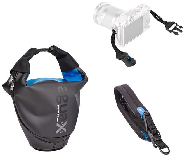 Miggo Agua 25 Stormproof kameralaukussa järjestelmäkamerasi ja lisätarvikkeet pysyvät vedeltä suojassa. IPX3-standardin mukainen laukku on valmistettu lycrasta ja kestävästä neopreenillä päällystetystä kankaasta, mikä tarjoaa kamerallesi erinomaisen suojan säällä kuin säällä. Laukussa on irrotettava hihna ja nopeasti aukaistava vetoketju. Käytännöllinen tasku kameratarvikkeille.