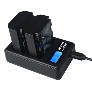 Kätevä kameran laturi, jossa on LCD-näyttö, joka osoittaa latauksen tilan.